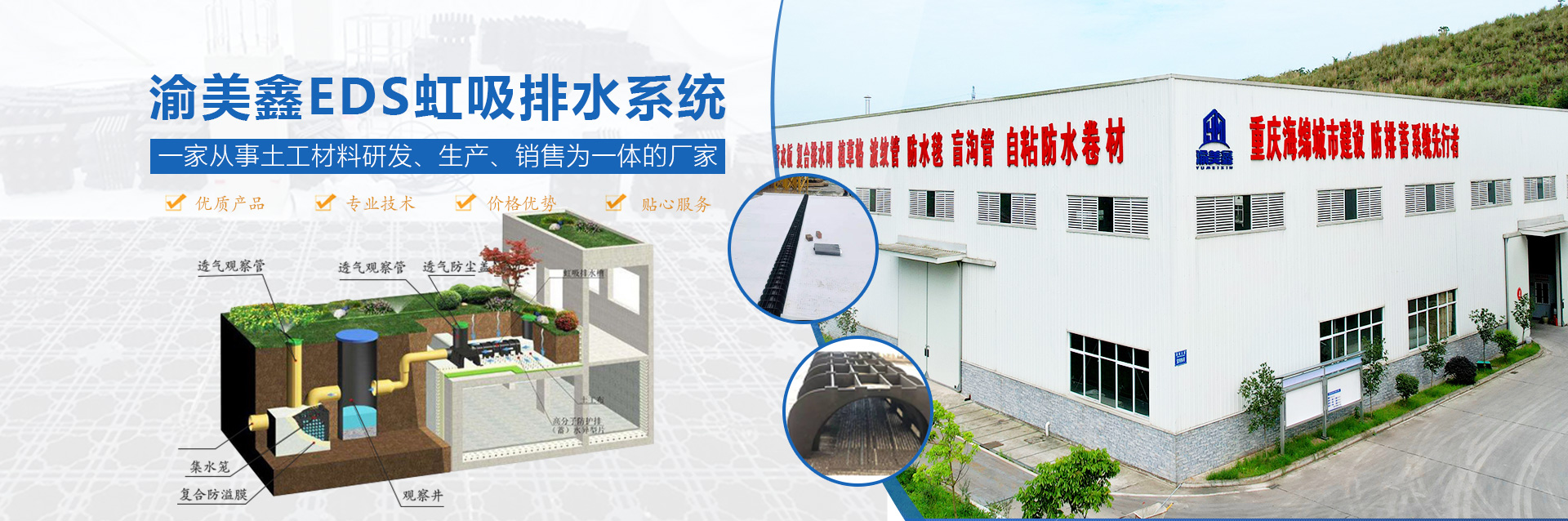 座落于重慶市西南部江津區(qū)“中國長壽之鄉(xiāng)”,公司位于德感工業(yè)園區(qū)平蘭路,占地25842.29平方米,注冊資金100008000元。廠區(qū)緊鄰繞城高速德感出口,交通十分便利。公司成立于2017年,是以中國海綿城市產(chǎn)品生產(chǎn)、環(huán)保設(shè)備生產(chǎn)、環(huán)保工程的設(shè)計、施工總承包以及環(huán)保工程改造為主體的科技型企業(yè);公司主要從事環(huán)保技術(shù)開發(fā):研發(fā)、生產(chǎn)、銷售:土工合成材料、塑料制品、金屬制品、橡膠制品、防水材料、建材、土工布、土工格柵、土工網(wǎng)墊;防腐工程、環(huán)保工程、河源政治工程、防水工程、工礦防滲工程設(shè)計、施工:銷售:節(jié)能產(chǎn)品、機(jī)電設(shè)備、暖通設(shè)備、環(huán)保設(shè)備:其它水的處理、利用與分配:環(huán)境保護(hù)專用設(shè)備;大氣污染治理;其它污染治理;貨物及技術(shù)進(jìn)出口。